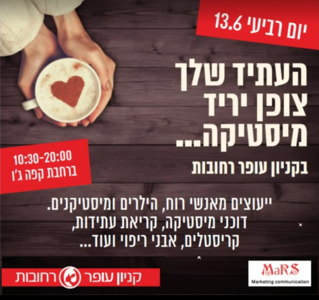 ביוני 2021 הפקנו פסטיבל מיסטיקה, רוחניות ופיתוח התודעה עבור קניון עופר רחובות.